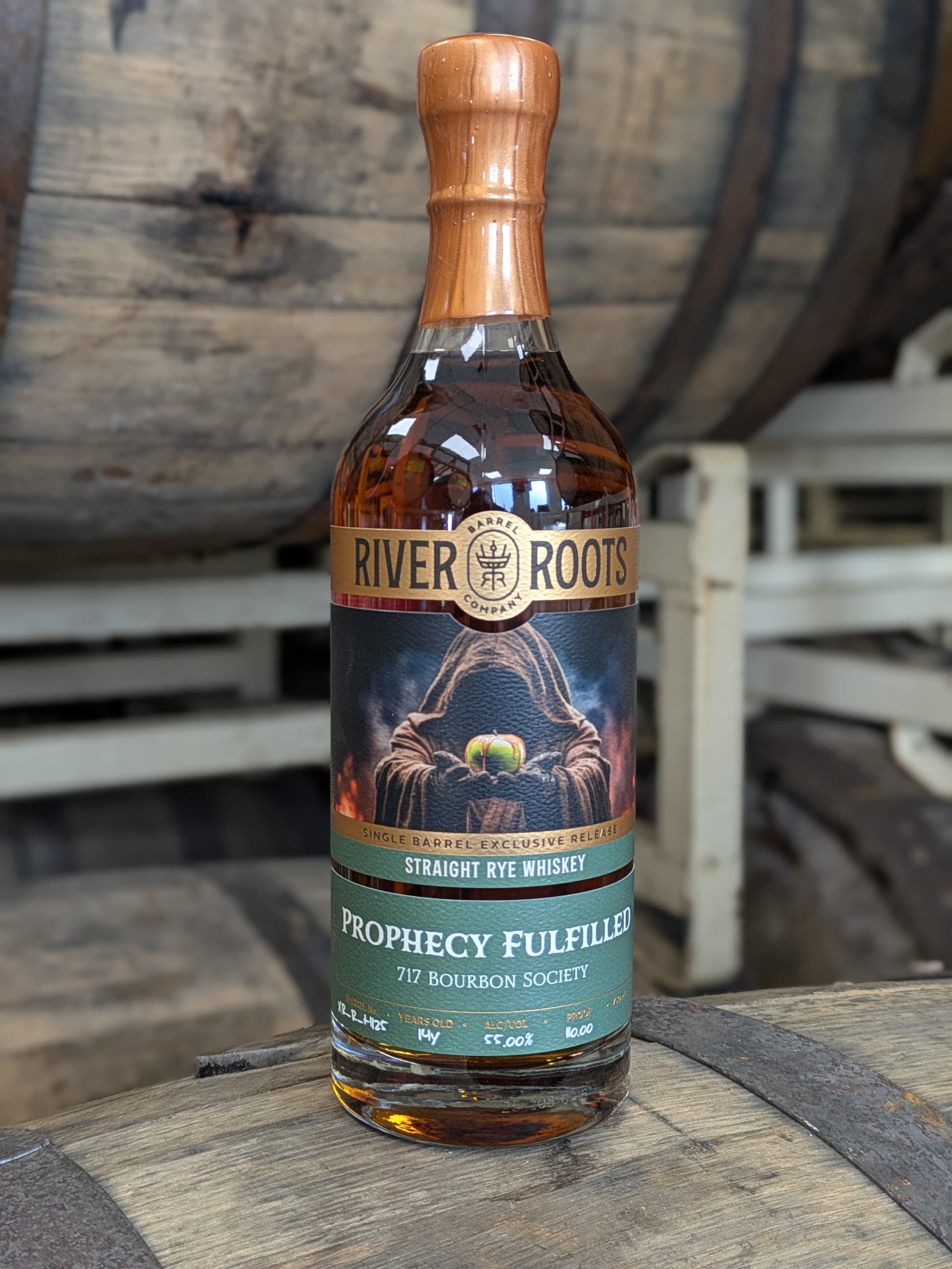717 Bourbon Society presents “Prophecy Fulfilled”, a 14 year, 110 proof rye whiskey from River Roots barrel company.